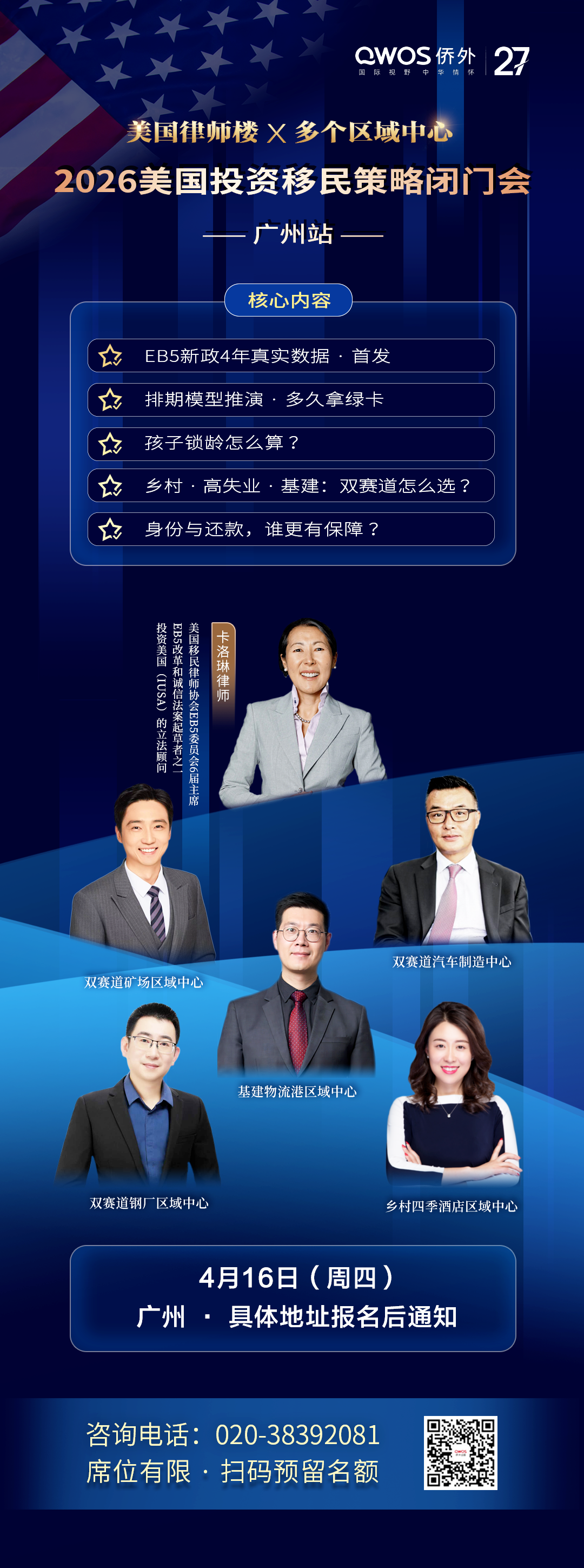 为了帮助投资者在最后窗口期做出准确决策,侨外出国特别邀请到了EB-5领域最具分量的权威专家——卡洛琳律师,举办全国巡回讲座。