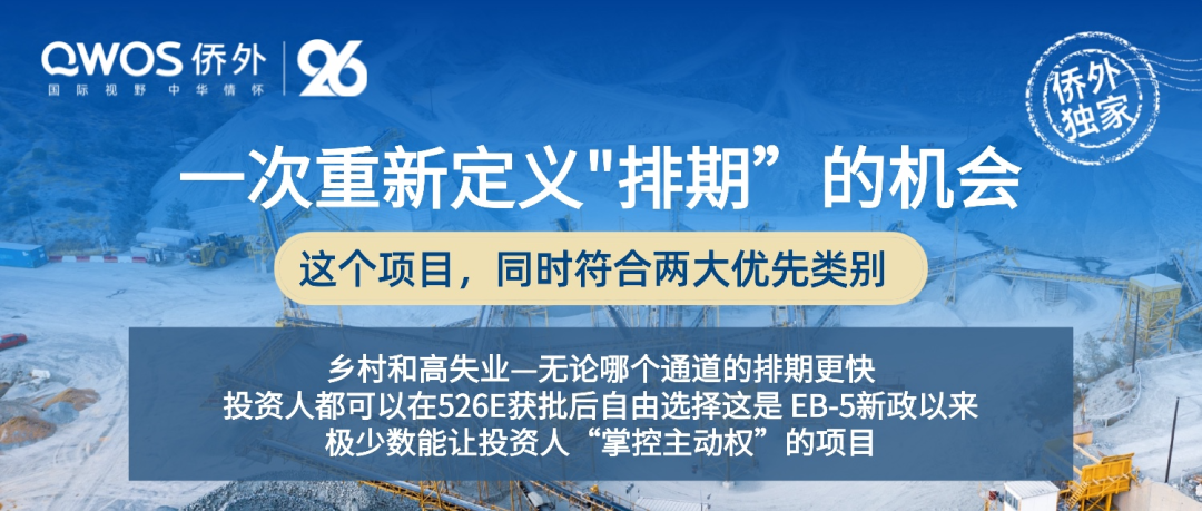 基于以上标准,侨外集团为EB-5投资人严格甄选了一个“乡村+高失业”双赛道项目——得州矿场项目,并为您保留两大优先通道的自主选择权。这一设计,让您在这最后的窗口期,总能依据最新签证排期动态,选择更优、更快的路径。