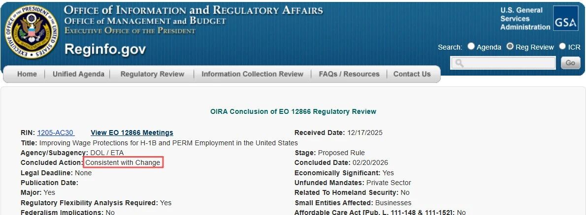 在Reginfo.gov网站上,该规则的审查状态已标注为“与变更一致”。在行政流程中,OMB的审查通常是新规正式发布并生效前的最后一步。一旦OMB签字批准,该规定将在《联邦公报》上正式公布并实施。
