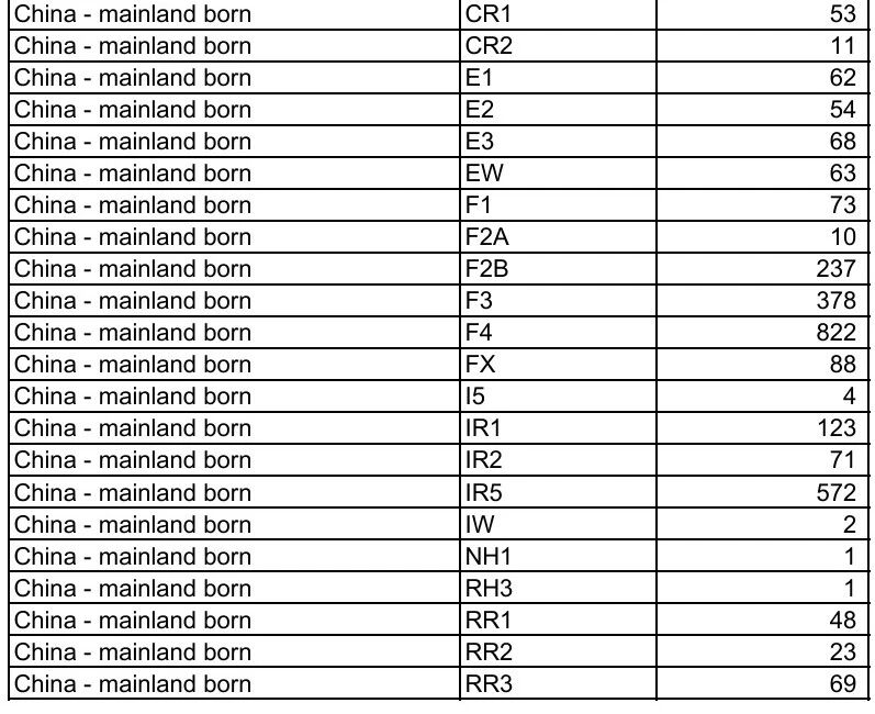 全球各地中国出生的申请人,6月份在E1类别(职业类移民EB-1)上共获得了52张移民签证,7月份62张,8月份50张,远低于财年初(10月817张、11月442张)的水平,符合财年末签证发放的常规节奏。