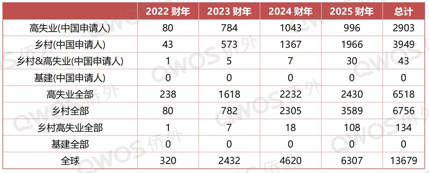 与乡村项目的持续升温形成对比的是,高失业区项目在2025财年有所降温。
