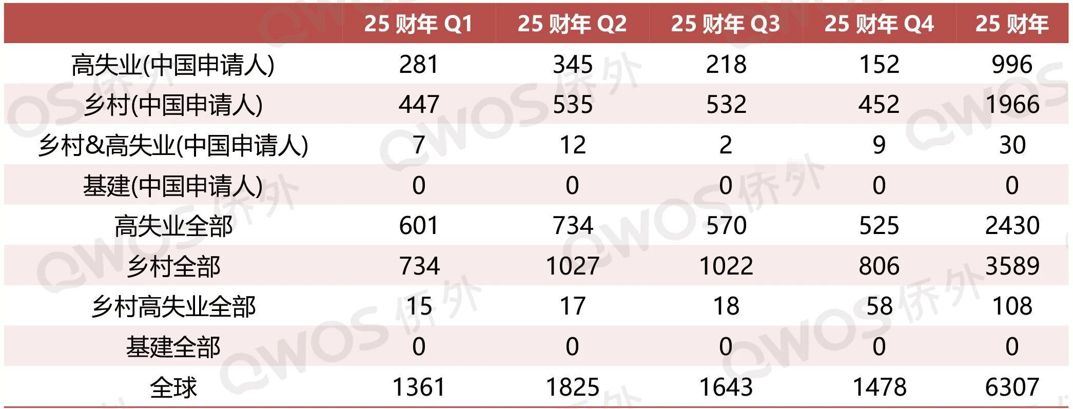 2024财年之前,高失业区申请量略高于乡村地区,但自2024财年起,乡村地区申请量实现反超,至2025财年已领先超过1,100件。