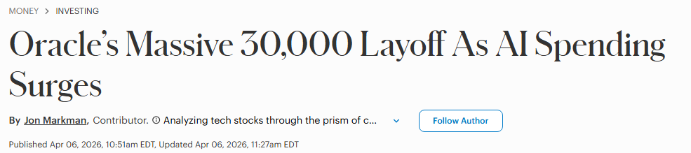 后来他才知道,这一天,全球有三万人收到了同一封邮件。三万人。甲骨文史上最大规模的单日裁员。工程师、云服务、技术支持……谁也没跑掉。